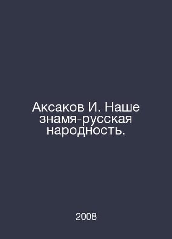 Aksakov I. Our banner is Russian. In Russian /Aksakov I. Nashe znamya-russkaya narodnost. Series: Russian Civilization. M. Institute of Russian Civilization. 2008.Contact us for details or to request photos of available books. Delivery of this book could take longer than normal due to additional handling time before shipping, and no rush delivery options are available. Please let us know if you have a specific date by which you need to receive your order.SKUalbe5a020f5372e43d0