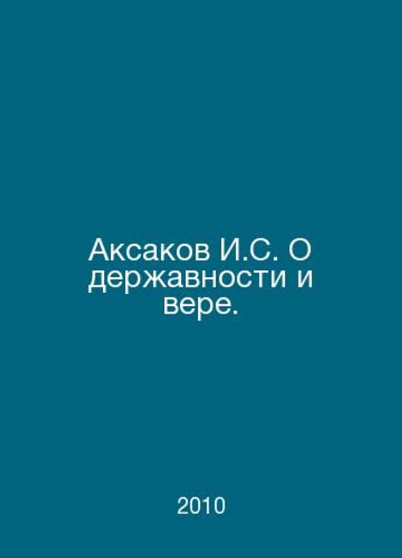 Aksakov I.S. On Power and Faith. In Russian /Aksakov I.S. O derzhavnosti i vere. Minsk Belarusian Exarchate 2010.Contact us for details or to request photos of available books. Delivery of this book could take longer than normal due to additional handling time before shipping, and no rush delivery options are available. Please let us know if you have a specific date by which you need to receive your order.SKUalbe5fdc28087482513