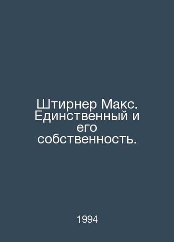Stirner Max. The only one and his property. In Russian /Shtirner Maks. Edinstvennyy i ego sobstvennost. Kharkiv. Basis. 1994.Contact us for details or to request photos of available books. Delivery of this book could take longer than normal due to additional handling time before shipping, and no rush delivery options are available. Please let us know if you have a specific date by which you need to receive your order.SKUalbe644447f72f9153f