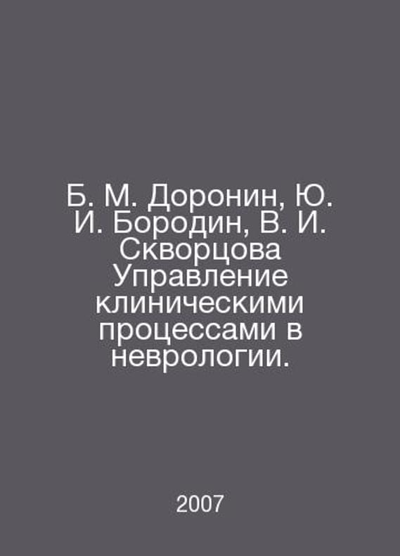 B. M. Doronin, Yu. I. Borodin, V. I. Skvortsova Management of clinical processes in neurology. In Russian /B. M. Doronin, Yu. I. Borodin, V. I. Skvortsova Upravlenie klinicheskimi protsessami v nevrologii. M Literra 2007.Contact us for details or to request photos of available books. Delivery of this book could take longer than normal due to additional handling time before shipping, and no rush delivery options are available. Please let us know if you have a specific date by which you need to receive your order.SKUalbe661cf5317672534