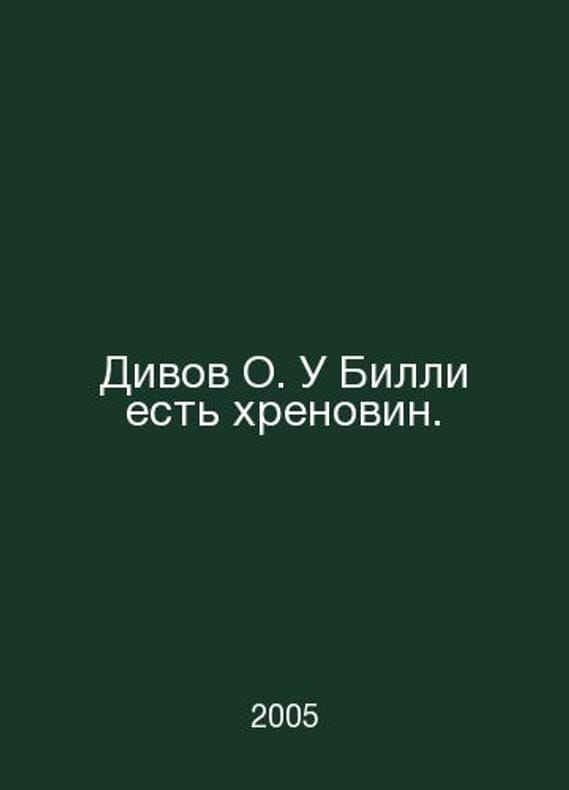 Diva O. Billy has a crap. In Russian /Divov O. U Billi est khrenovin. Series: Absolute Weapons M Exmo 2005. Contact us for details or to request photos of available books. Delivery of this book could take longer than normal due to additional handling time before shipping, and no rush delivery options are available. Please let us know if you have a specific date by which you need to receive your order.SKUalbe66515955ac87a7d