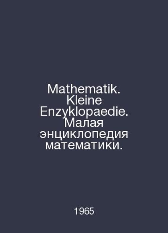 Mathematik. Kleine Enzyklopaedie. Small Encyclopedia of Mathematics. In Russian /Mathematik. Kleine Enzyklopaedie. Malaya entsiklopediya matematiki. In German: 950 diagrams, graphs, tables, including 750 colour, 72 sheets with illustrations. Leipzig VEB Verlag Enzyklopaedie 1965.Contact us for details or to request photos of available books. Delivery of this book could take longer than normal due to additional handling time before shipping, and no rush delivery options are available. Please let us know if you have a specific date by which you need to receive your order.SKUalbe8835e3e669abced