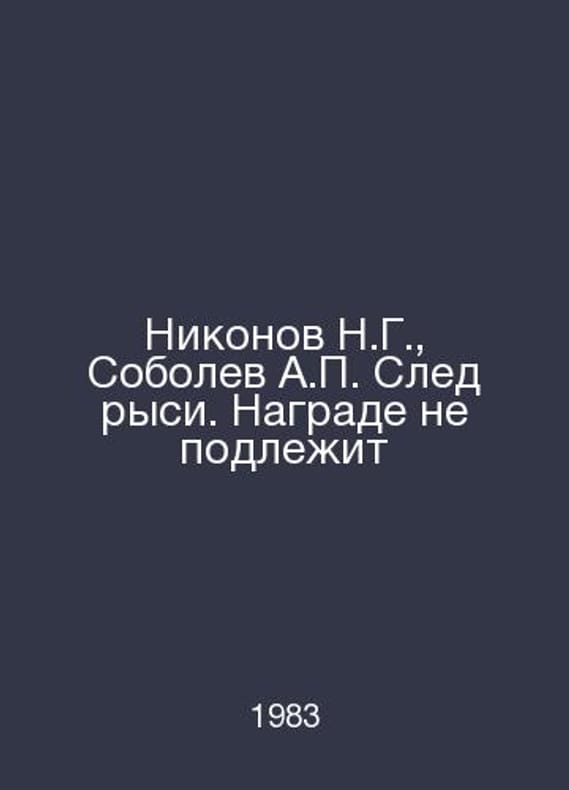 Nikonov N.G., Sobolev A. Lynx Trail In Russian /Nikonov N.G., Sobolev A. Sled rysi. Nagrade ne podlezhit Poem, Novel, Novel-Newspaper # 24 M Art. 1983.Contact us for details or to request photos of available books. Delivery of this book could take longer than normal due to additional handling time before shipping, and no rush delivery options are available. Please let us know if you have a specific date by which you need to receive your order.SKUalbe8dd517e4f84401a