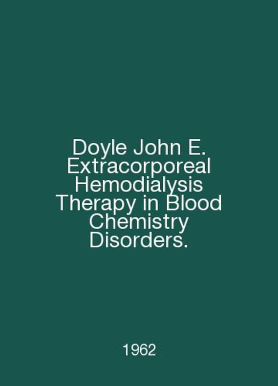 Doyle John E. Extracorporeal Hemodialysis Therapy in Blood Chemistry Disorders. In English /Doyle John E. Extracorporeal Hemodialysis Therapy in Blood Chemistry Disorders. Extracorporeal hemodialysis therapy in the treatment of systemic blood clots. Sprinfield Ch.Thomas Publ. 1962.Contact us for details or to request photos of available books. Delivery of this book could take longer than normal due to additional handling time before shipping, and no rush delivery options are available. Please let us know if you have a specific date by which you need to receive your order.SKUalbea84dddb27670fbb