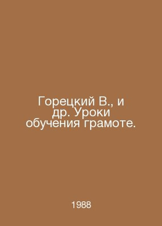 Goretsky V., et al. Lessons in Literacy. In Russian /Goretskiy V., i dr. Uroki obucheniya gramote. For Teaches, M Enlightenment 1988.. Contact us for details or to request photos of available books. SKUalbeaa08c4503f583a0.