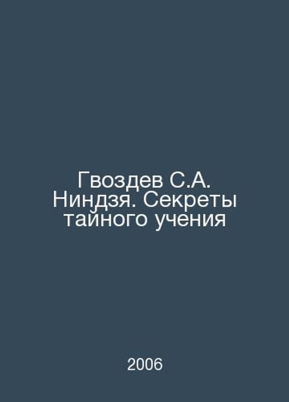 S.A. Ninjas Nail. Secrets of the Secret Teaching In Russian /Gvozdev S.A. Nindzya. Sekrety taynogo ucheniya Teaching and Methodological Manual M Modern School 2006. Contact us for details or to request photos of available books. Delivery of this book could take longer than normal due to additional handling time before shipping, and no rush delivery options are available. Please let us know if you have a specific date by which you need to receive your order. SKUalbebc07455bc08a3f8