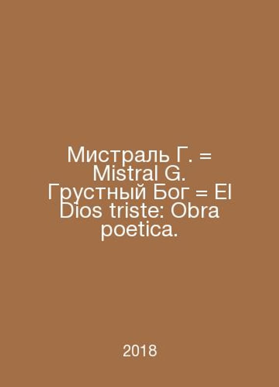 Mistral G. Mistral G. Sad God El Dios triste: Obra poetry. In Russian /Mistral G. Mistral G. Grustnyy Bog El Dios triste: Obra poetica. Poems: [in Spanish and Russian]. Comment by E. Braginskaya: translated by O. Savic, I. Lisnyanskaya, E. Khovanovich, etc. Moscow Rudomino Book Center 2018. Contact us for details or to request photos of available books. Delivery of this book could take longer than normal due to additional handling time before shipping, and no rush delivery options are available. Please let us know if you have a specific date by which you need to receive your order. SKUalbebdca9075c10c1ab