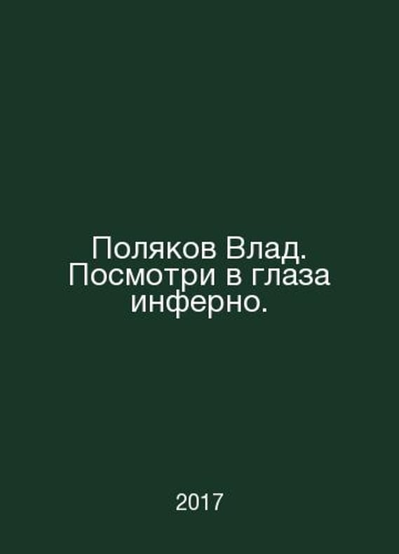 Poles Vlad. Look into your eyes Inferno. In Russian /Polyakov Vlad. Posmotri v glaza inferno. Series: Our there M. Center Polygraph 2017. Contact us for details or to request photos of available books. Delivery of this book could take longer than normal due to additional handling time before shipping, and no rush delivery options are available. Please let us know if you have a specific date by which you need to receive your order.SKUalbebe971b2879206e9
