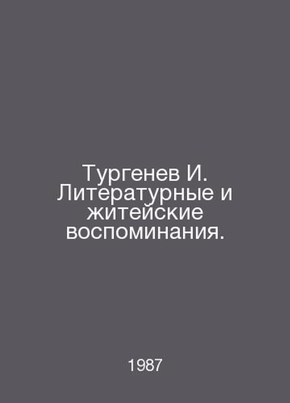 Turgenev I. Literary and life memories. In Russian /Turgenev I. Literaturnye i zhiteyskie vospominaniya. M Truth 1987. Contact us for details or to request photos of available books. Delivery of this book could take longer than normal due to additional handling time before shipping, and no rush delivery options are available. Please let us know if you have a specific date by which you need to receive your order. SKUalbec7d5dc9b4c8b1d3