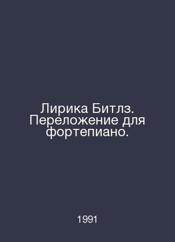The Beatles Lyric. Piano arrangement. In Russian /Lirika Bitlz. Perelozhenie dlya fortepiano. Composer A.G. Gavrilov. Moscow: Soviet Composer 1991. Contact us for details or to request photos of available books. Delivery of this book could take longer than normal due to additional handling time before shipping, and no rush delivery options are available. Please let us know if you have a specific date by which you need to receive your order.SKUalbec93a0afa4acf1f2