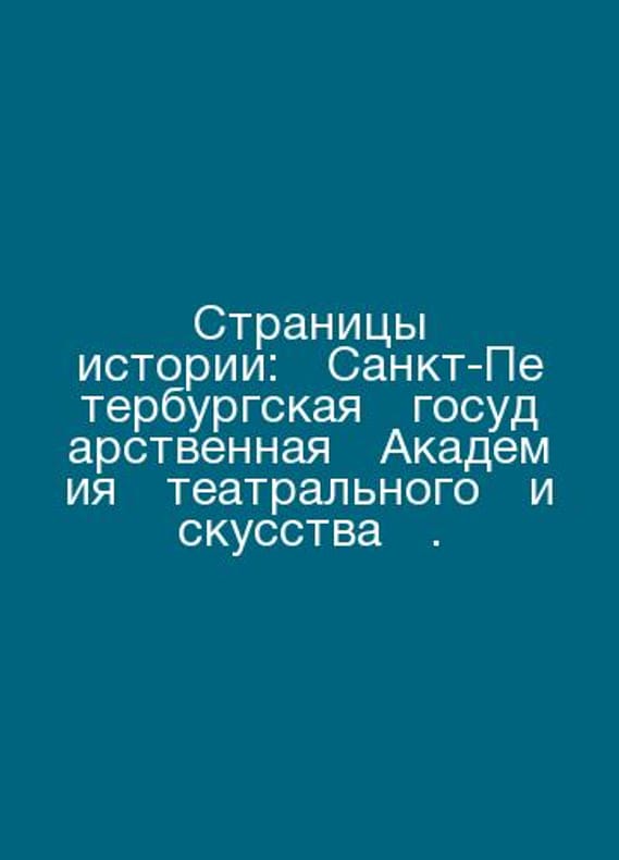 Pages of history: St. Petersburg State Academy of Theatre Arts. In Russian /Stranitsy istorii:†Sankt-Peterburgskaya†gosudarstvennaya†Akademiya†teatralnogo†iskusstva†. St. Petersburg Publishing House of State Academic Theatre Arts, 2000, 383Contact us for details or to request photos of available books. Delivery of this book could take longer than normal due to additional handling time before shipping, and no rush delivery options are available. Please let us know if you have a specific date by which you need to receive your order.SKUalbecf5de745cb32fc7