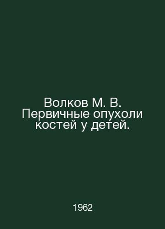 Volkov M. V. Primary bone tumors in children. In Russian /Volkov M. V. Pervichnye opukholi kostey u detey. Recognition and Surgical Treatment. M. Medgiz 1962.Contact us for details or to request photos of available books. Delivery of this book could take longer than normal due to additional handling time before shipping, and no rush delivery options are available. Please let us know if you have a specific date by which you need to receive your order.SKUalbeddefcef0e1db566
