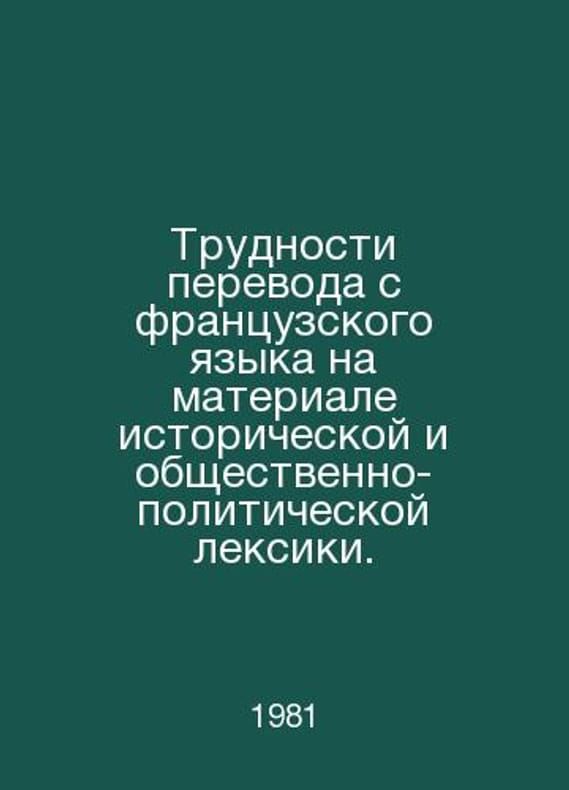 Difficulties of translation from French into historical and socio-political vocabulary. In Russian /Trudnosti perevoda s frantsuzskogo yazyka na materiale istoricheskoy i obshchestvenno-politicheskoy leksiki. Ltd. task 1981.. Contact us for details or to request photos of available books. SKUalbede1a8e33671521b.