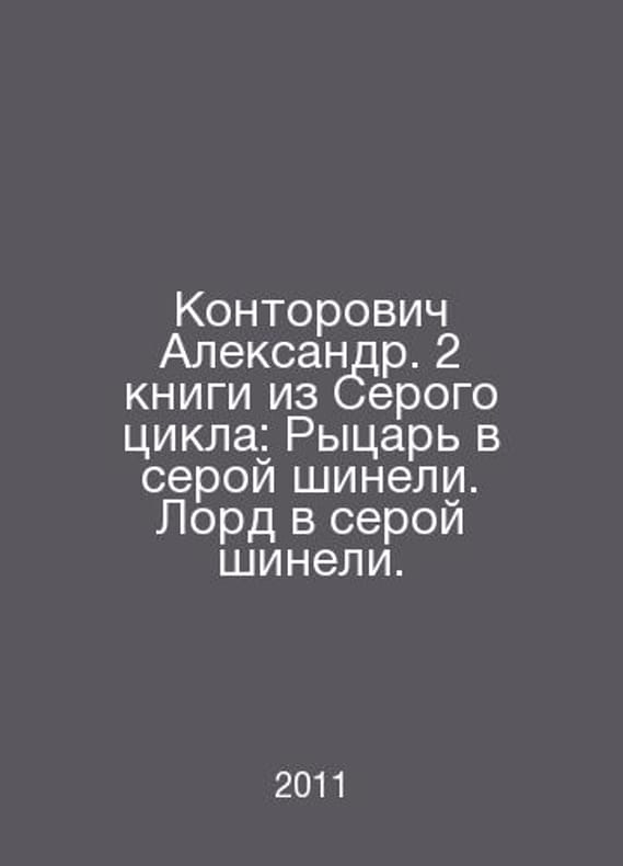 Kontorovich Alexander. 2 books from the Grey Cycle: The Knight in the Grey Coat. Lord in the Grey Coat. In Russian /Kontorovich Aleksandr. 2 knigi iz Serogo tsikla: Rytsar v seroy shineli. Lord v seroy shineli. Wars of the Worlds. A Fantastic Action Man. M. Yauza-Eksmo. 2011. Contact us for details or to request photos of available books. Delivery of this book could take longer than normal due to additional handling time before shipping, and no rush delivery options are available. Please let us know if you have a specific date by which you need to receive your order.SKUalbedff8a71ad108a90
