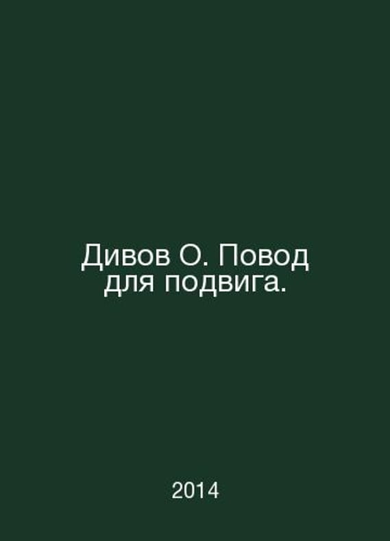 Diva O. Reason for the feat. In Russian /Divov O. Povod dlya podviga. New Dives series. M Exmo 2014 collection. Contact us for details or to request photos of available books. Delivery of this book could take longer than normal due to additional handling time before shipping, and no rush delivery options are available. Please let us know if you have a specific date by which you need to receive your order.SKUalbee49daa848950ad4