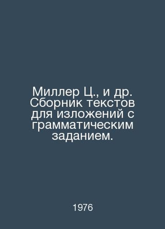 Miller C., et al. A collection of texts for statements with a grammatical task. In Russian /Miller Ts., i dr. Sbornik tekstov dlya izlozheniy s grammaticheskim zadaniem. M Enlightenment 1976.. Contact us for details or to request photos of available books. SKUalbee65f1f43d2beac3.