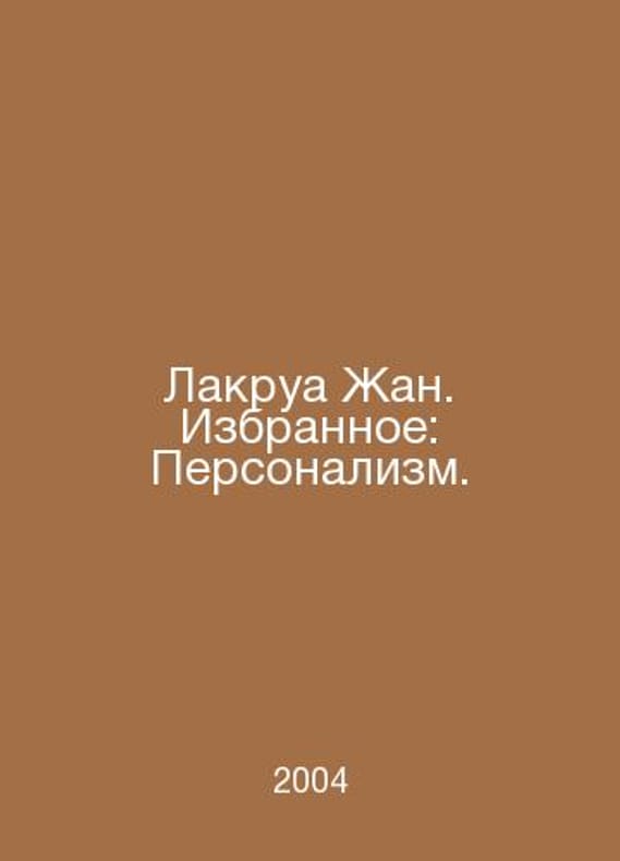 Lacroix Jean. Favourites: Personalism. In Russian /Lakrua Zhan. Izbrannoe: Personalizm. M. ROSSPEN 2004.Contact us for details or to request photos of available books. Delivery of this book could take longer than normal due to additional handling time before shipping, and no rush delivery options are available. Please let us know if you have a specific date by which you need to receive your order.SKUalbee8334b1d5e6e950