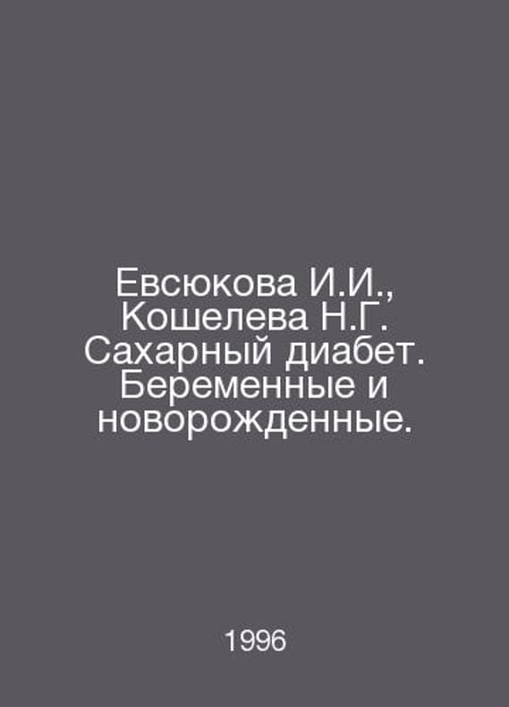 Evsyukova I.I., Kosheleva N.G. Diabetes mellitus. Pregnant and newborn babies. In Russian /Evsyukova I.I., Kosheleva N.G. Sakharnyy diabet. Beremennye i novorozhdennye. S.Pb.Special Literature. 1996.Contact us for details or to request photos of available books. Delivery of this book could take longer than normal due to additional handling time before shipping, and no rush delivery options are available. Please let us know if you have a specific date by which you need to receive your order.SKUalbee956b60c89f1309