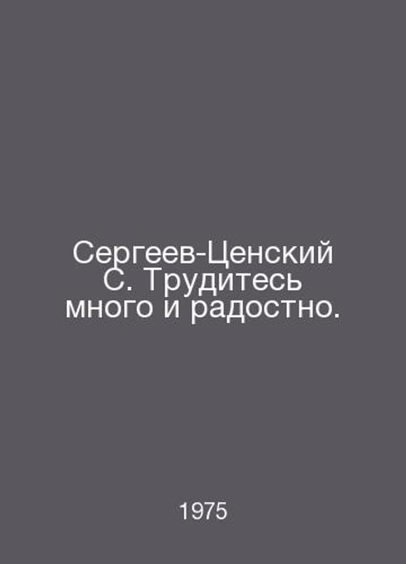 Sergei-Tsensky S. Work hard and enjoy. In Russian /Sergeev-Tsenskiy S. Trudites mnogo i radostno. Ms chosen publicist is the Young Guard 1975. Contact us for details or to request photos of available books. Delivery of this book could take longer than normal due to additional handling time before shipping, and no rush delivery options are available. Please let us know if you have a specific date by which you need to receive your order. SKUalbeee12eaf744cb421