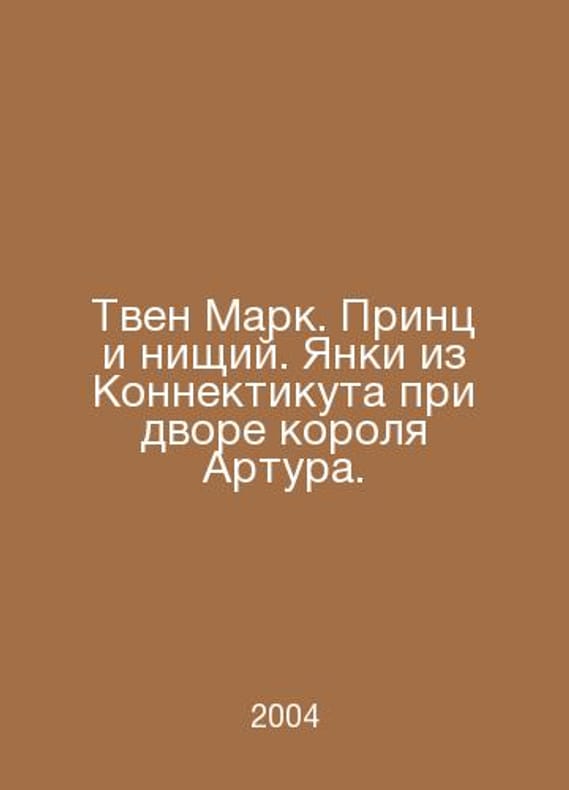 Twain Mark. Prince and the Beggar. Yankee of Connecticut at King Arthurs Court. In Russian /Tven Mark. Prints i nishchiy. Yanki iz Konnektikuta pri dvore korolya Artura. Series: My first collection of essays. M. OLMA-PRESS Education. 2004.Contact us for details or to request photos of available books. Delivery of this book could take longer than normal due to additional handling time before shipping, and no rush delivery options are available. Please let us know if you have a specific date by which you need to receive your order.SKUalbef1ff1811287924e