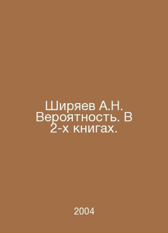 Shiryaev A.N. Likelihood. In 2 books. In Russian /Shiryaev A.N. Veroyatnost. V 2-kh knigakh. 3rd edition, revised and supplemented. Moscow ICNMO 2004.Contact us for details or to request photos of available books. Delivery of this book could take longer than normal due to additional handling time before shipping, and no rush delivery options are available. Please let us know if you have a specific date by which you need to receive your order.SKUalbef57d53c7f8379c0