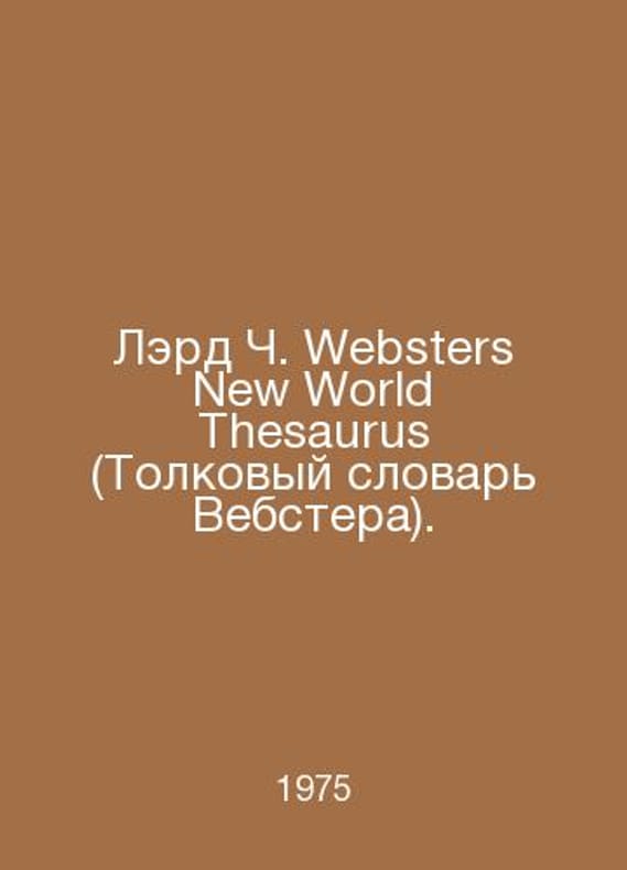 Laird C. Websters New World Thesaurus. In English /Lerd Ch. Websters New World Thesaurus (Tolkovyy slovar Vebstera). Book in English. New York. New American Library. 1975.. Contact us for details or to request photos of available books. SKUalbef97d851db1f7027.
