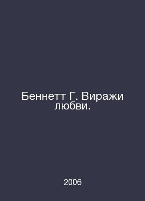 Bennett G. Virages of Love. In Russian /Bennett G. Virazhi lyubvi. Panorama series of love novels M Panorama 2006. Contact us for details or to request photos of available books. Delivery of this book could take longer than normal due to additional handling time before shipping, and no rush delivery options are available. Please let us know if you have a specific date by which you need to receive your order. SKUalbf0a382252ce51140