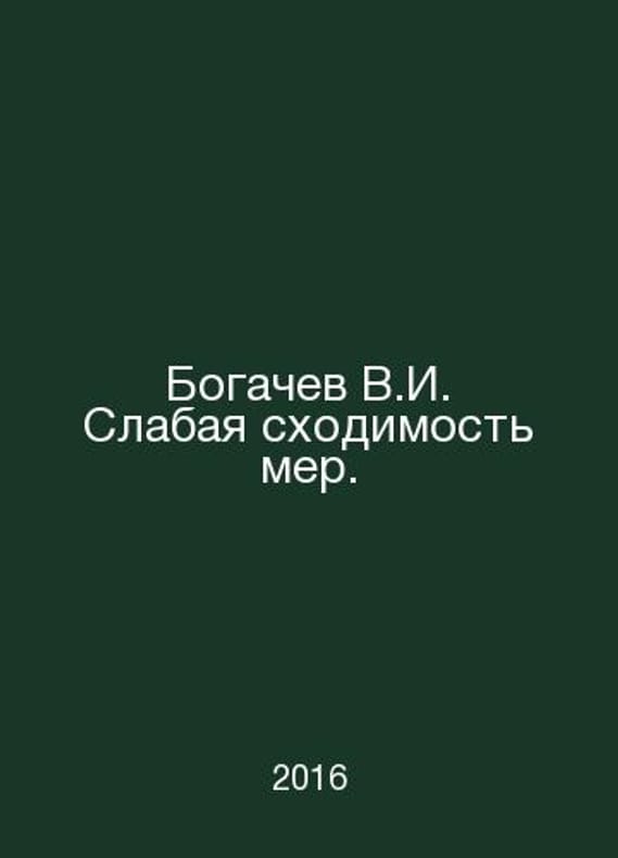 Bogachev V.I. Weak convergence of measures. In Russian /Bogachev V.I. Slabaya skhodimost mer. M.-Izhevsk, IKI, 2016.Contact us for details or to request photos of available books. Delivery of this book could take longer than normal due to additional handling time before shipping, and no rush delivery options are available. Please let us know if you have a specific date by which you need to receive your order.SKUalbf0e902d5bf4e28cd