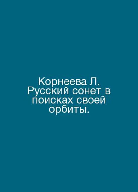 Korneeva L. Russian sonnet in search of its orbit. In Russian /Korneeva L. Russkiy sonet v poiskakh svoey orbity. St. Petersburg Center for Humanitarian Initiatives 2022 360 Contact us for details or to request photos of available books. Delivery of this book could take longer than normal due to additional handling time before shipping, and no rush delivery options are available. Please let us know if you have a specific date by which you need to receive your order. SKUalbf17aa6fa67117814