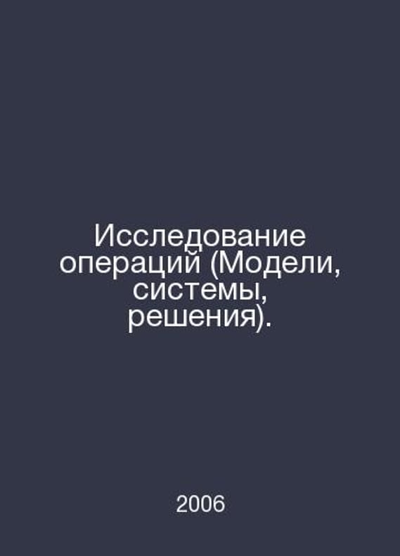 Transaction Research (Models, Systems, Solutions). In Russian /Issledovanie operatsiy (Modeli, sistemy, resheniya). M. VC RAS. 2006.Contact us for details or to request photos of available books. Delivery of this book could take longer than normal due to additional handling time before shipping, and no rush delivery options are available. Please let us know if you have a specific date by which you need to receive your order.SKUalbf23e1bad4b7da84d