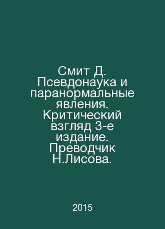 Smith D. Pseudo-science and paranormal phenomena. Critical view 3rd edition. Presenter N. Lisova. In Russian /Smit D. Psevdonauka i paranormalnye yavleniya. Kriticheskiy vzglyad 3-e izdanie. Prevodchik N.Lisova. M.: Alpina non fiction 2015. Contact us for details or to request photos of available books. Delivery of this book could take longer than normal due to additional handling time before shipping, and no rush delivery options are available. Please let us know if you have a specific date by which you need to receive your order. SKUalbf45870f33b558e3c