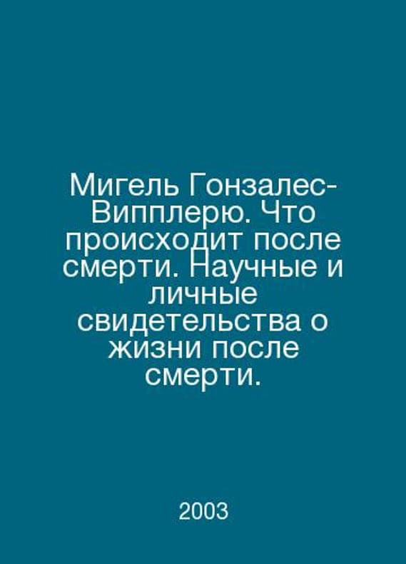 Miguel Gonzalez-Wippler: What happens after death. Scientific and personal evidence of life after death. In Russian /Migel Gonzales-Vippleryu. Chto proiskhodit posle smerti. Nauchnye i lichnye svidetelstva o zhizni posle smerti. S-Pb., The Future of the Earth. 2003. Contact us for details or to request photos of available books. Delivery of this book could take longer than normal due to additional handling time before shipping, and no rush delivery options are available. Please let us know if you have a specific date by which you need to receive your order. SKUalbf63e8fa5ce4a7a93