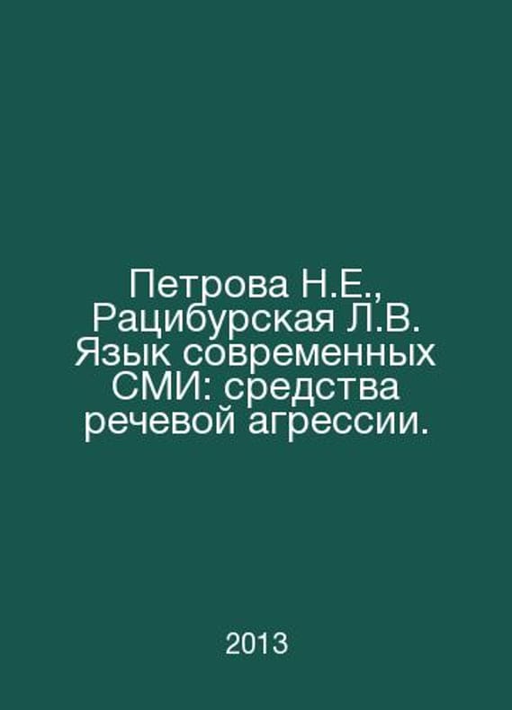 Petrova N.E., Ratsiburskaya L.V. Language of modern mass media: means of speech aggression. In Russian /Petrova N.E., Ratsiburskaya L.V. Yazyk sovremennykh SMI: sredstva rechevoy agressii. M. Flint 2013.. Contact us for details or to request photos of available books. SKUalbf6d300a60b87194e.