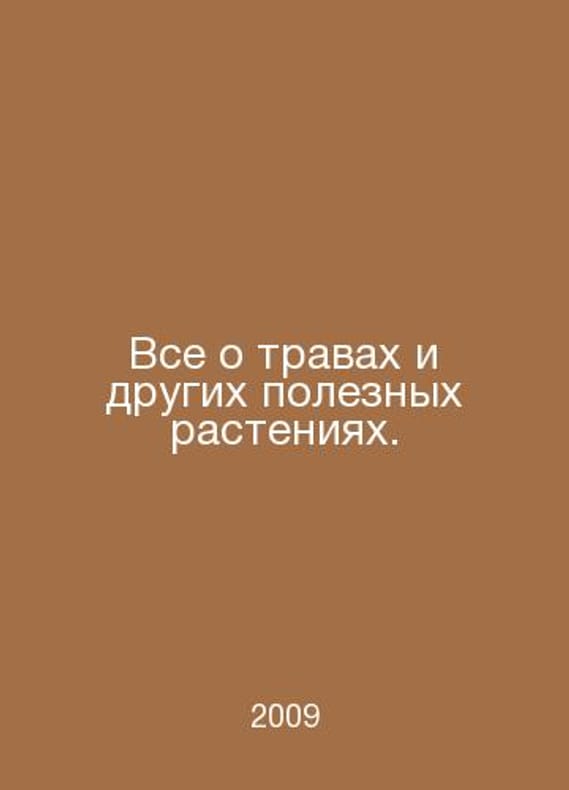 All about herbs and other beneficial plants. In Russian /Vse o travakh i drugikh poleznykh rasteniyakh. Crop, herbal medicine, cosmetology, home economics, handicrafts, cooking. M. Readers Digest 2009.Contact us for details or to request photos of available books. Delivery of this book could take longer than normal due to additional handling time before shipping, and no rush delivery options are available. Please let us know if you have a specific date by which you need to receive your order.SKUalbf7d58ac44bf23556