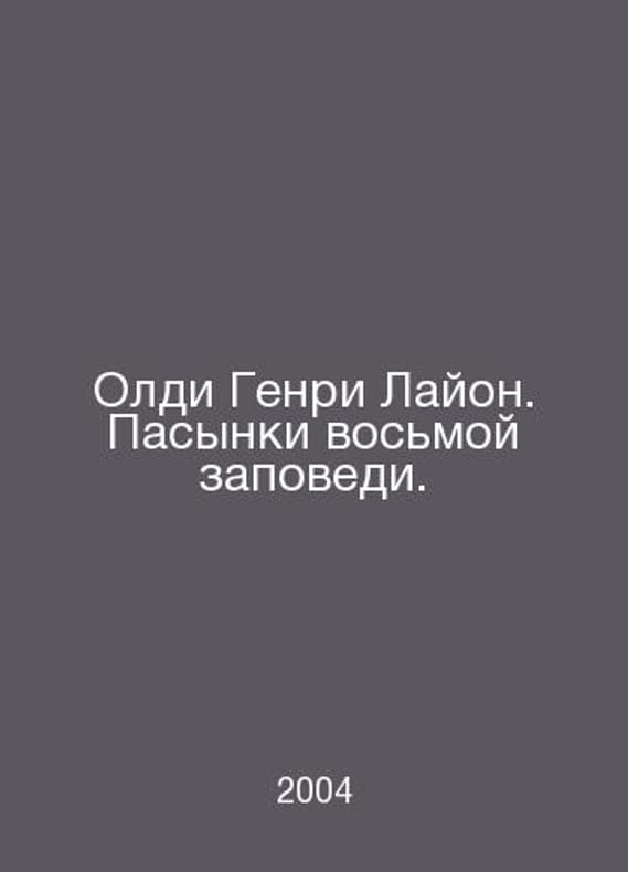 Oldie Henry Lyon. The Passions of the Eighth Commandment. In Russian /Oldi Genri Layon. Pasynki vosmoy zapovedi. Series: Triumvirate. Moscow: Eksmo, 2004. Contact us for details or to request photos of available books. Delivery of this book could take longer than normal due to additional handling time before shipping, and no rush delivery options are available. Please let us know if you have a specific date by which you need to receive your order.SKUalbf8091994367ed7b7