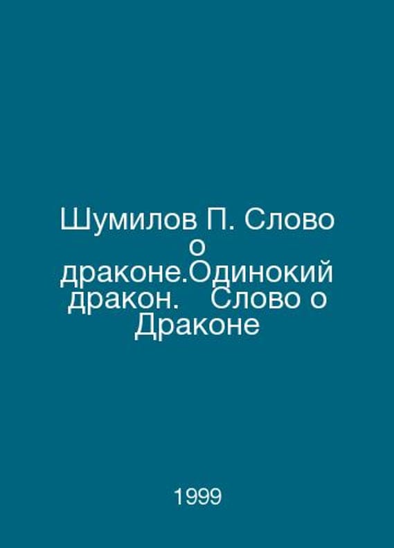 Rumilov The Word of the Dragon. The Lonely Dragon. The Word of the Dragon In Russian /Shumilov Slovo o drakone.Odinokiy drakon.†Slovo o Drakone Fantasy M Centropolygraph Series 1999.Contact us for details or to request photos of available books. Delivery of this book could take longer than normal due to additional handling time before shipping, and no rush delivery options are available. Please let us know if you have a specific date by which you need to receive your order.SKUalbf848572d8c5d5a5b