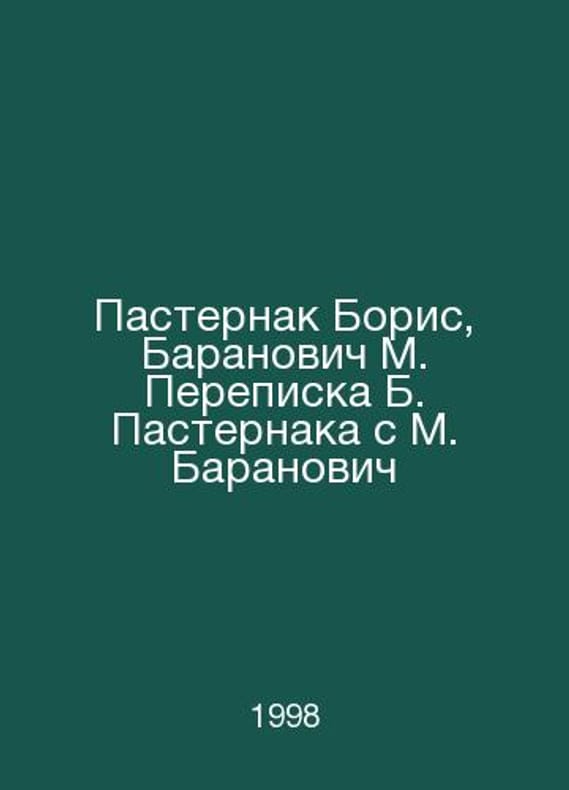 Boris Pasternak, M. Baranovich Correspondence between B. Pasternak and M. Baranovich In Russian /Pasternak Boris, Baranovich M. Perepiska B. Pasternaka s M. Baranovich Preparation, introductory article and comments by K.M. Polivanov. Biographical essay by A.A. Baranovich-Polivanova M. Publishing House MIC 1998. Contact us for details or to request photos of available books. Delivery of this book could take longer than normal due to additional handling time before shipping, and no rush delivery options are available. Please let us know if you have a specific date by which you need to receive your order. SKUalbf8aa8ae017702e43