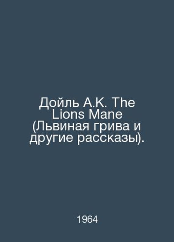 Doyle A.K. The Lions Mane (Lions mane and other stories). In English /Doyl A.K. The Lions Mane (Lvinaya griva i drugie rasskazy). A book for reading in English in the VIII-IX grades of secondary school. Adaptation, notes and dictionary by E.L. Maiskoy. Artist N.I. Kuznetsov. Moscow. Leningrad. Enlightenment. 1964.. Contact us for details or to request photos of available books. SKUalbfa0a455bea55181c.