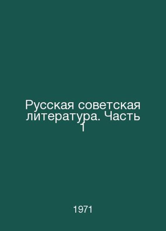 Russian Soviet Literature. Part 1 In Russian /Russkaya sovetskaya literatura. Chast 1 A textbook for 10 kl. M Enlightenment 1971. Contact us for details or to request photos of available books. Delivery of this book could take longer than normal due to additional handling time before shipping, and no rush delivery options are available. Please let us know if you have a specific date by which you need to receive your order. SKUalbfa116b4c0beef008