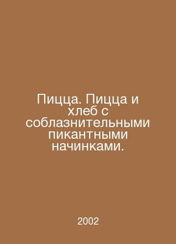 Pizza. Pizza and bread with seductive piquant toppings. In Russian /Pitstsa. Pitstsa i khleb s soblaznitelnymi pikantnymi nachinkami. M. Labyrinth 2002.. Contact us for details or to request photos of available books. SKUalbfab353fde0db53ed.