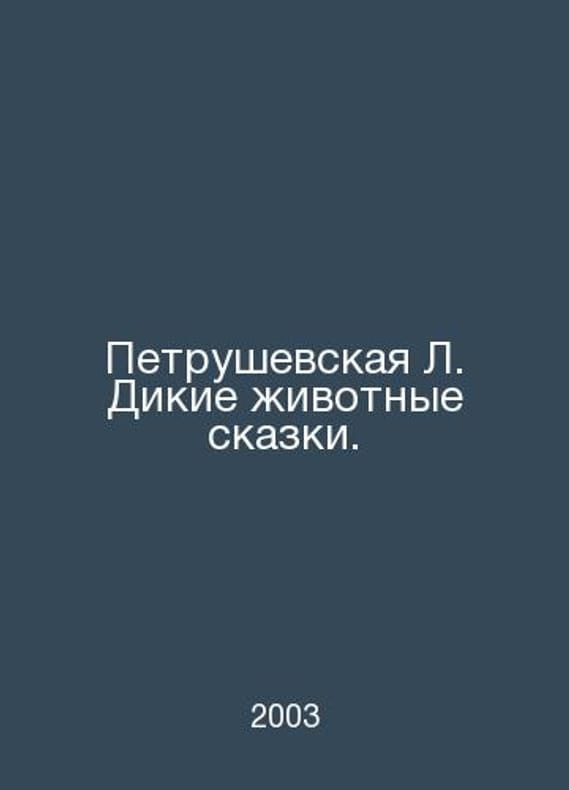 Petrushevskaya L. Wild Animal Tales. In Russian /Petrushevskaya L. Dikie zhivotnye skazki. M Exmo 2003.Contact us for details or to request photos of available books. Delivery of this book could take longer than normal due to additional handling time before shipping, and no rush delivery options are available. Please let us know if you have a specific date by which you need to receive your order.SKUalbfb16490dd259f5b8