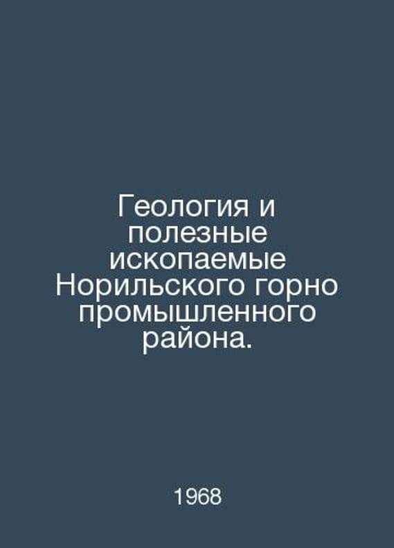 Geology and Minerals of Norilsk Mining District. In Russian /Geologiya i poleznye iskopaemye Norilskogo gornopromyshlennogo rayona. Proceedings of the I Conference of Norilsk Geologists. Norilsk Board of Directors of the Scientific and Technical Society of Non-Ferrous Metallurgy. Norilsk 1968. Contact us for details or to request photos of available books. Delivery of this book could take longer than normal due to additional handling time before shipping, and no rush delivery options are available. Please let us know if you have a specific date by which you need to receive your order.SKUalbfb5433c6d25c8c57