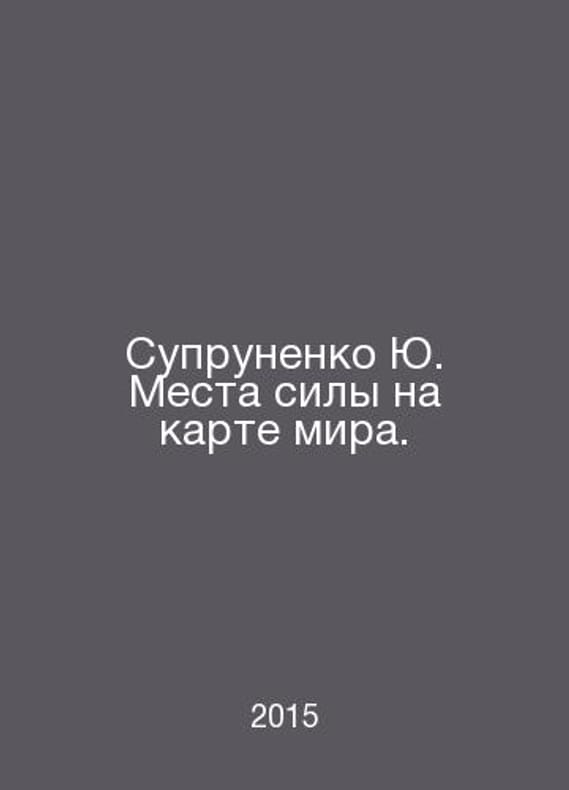 Yu. Suprunenkos Places of Power on the World Map. In Russian /Suprunenko Yu. Mesta sily na karte mira. Mysterious Places of the World (series) M Veche 2015. Contact us for details or to request photos of available books. Delivery of this book could take longer than normal due to additional handling time before shipping, and no rush delivery options are available. Please let us know if you have a specific date by which you need to receive your order. SKUalbfbcc8c8a25ca24b8