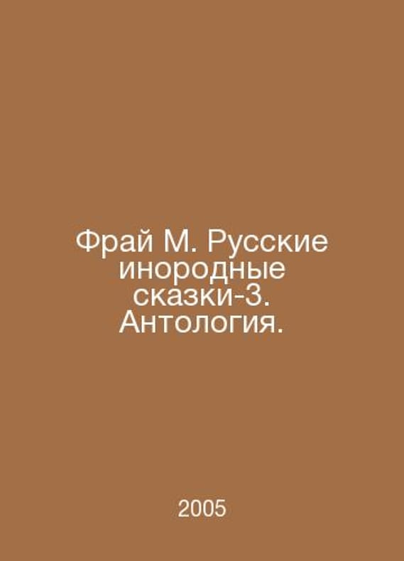 Fray M. Russian Foreign Tales-3. Anthology. In Russian /Fray M. Russkie inorodnye skazki-3. Antologiya. Series: of St. Petersburg Amphora 2005. Contact us for details or to request photos of available books. Delivery of this book could take longer than normal due to additional handling time before shipping, and no rush delivery options are available. Please let us know if you have a specific date by which you need to receive your order.SKUalbfcc4a6ec3fe4e30d