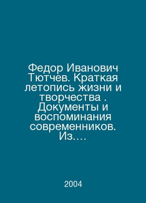 Fedor Ivanovich Tyutchev. A brief chronicle of life and creativity. Documents and memories of contemporaries. From. Tyutchev. Tyutchev and modernity. Wreath of the poet. In Russian /Fedor Ivanovich Tyutchev. Kratkaya letopis zhizni i tvorchestva. Dokumenty i vospominaniya sovremennikov. Iz. Tyutcheviany. Tyutchev i sovremennost. Venok poetu. Series: The Russian World in Faces. M. Russian World. 2004.Contact us for details or to request photos of available books. Delivery of this book could take longer than normal due to additional handling time before shipping, and no rush delivery options are available. Please let us know if you have a specific date by which you need to receive your order.SKUalbfcde346a910de635