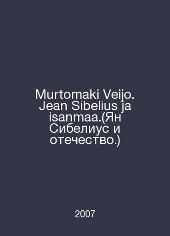 Murtomaki Veijo. Jean Sibelius ja isanmaa. (Jan Sibelius and the Fatherland.) In Russian /Murtomaki Veijo. Jean Sibelius ja isanmaa.(Yan Sibelius i otechestvo.) In Finnish. Helsinki. Tammi. 2007.Contact us for details or to request photos of available books. Delivery of this book could take longer than normal due to additional handling time before shipping, and no rush delivery options are available. Please let us know if you have a specific date by which you need to receive your order.SKUalbfd2a5a1e5e39bfe7