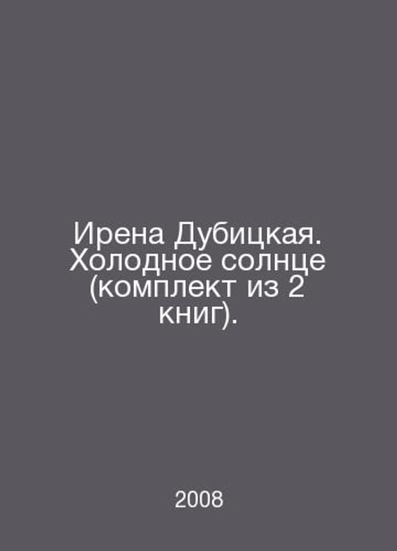 Irene Dubitskaya. Cold Sun (set of 2 books). In Russian /Irena Dubitskaya. Kholodnoe solntse (komplekt iz 2 knig). Sixth edition. 300 copies of S-Petersburg 2008.Contact us for details or to request photos of available books. Delivery of this book could take longer than normal due to additional handling time before shipping, and no rush delivery options are available. Please let us know if you have a specific date by which you need to receive your order.SKUalbfd6a46bdb90e0cb9