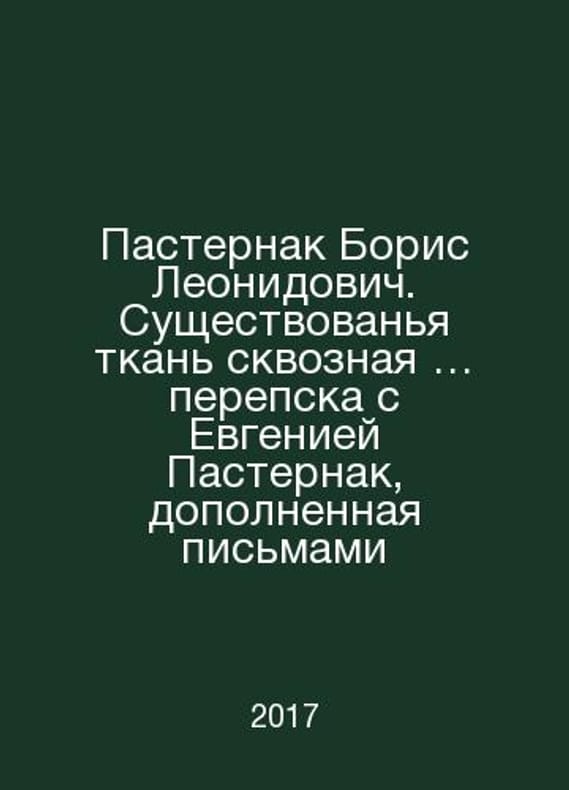 Boris Leonidovich Pasternak. The existence of the fabric through the exchange with Evgenia Pasternak, supplemented by letters In Russian /Pasternak Boris Leonidovich. Sushchestvovanya tkan skvoznaya perepska s Evgeniey Pasternak, dopolnennaya pismami Moscow ACT 2017.Contact us for details or to request photos of available books. Delivery of this book could take longer than normal due to additional handling time before shipping, and no rush delivery options are available. Please let us know if you have a specific date by which you need to receive your order.SKUalbfddc930713e4bc33
