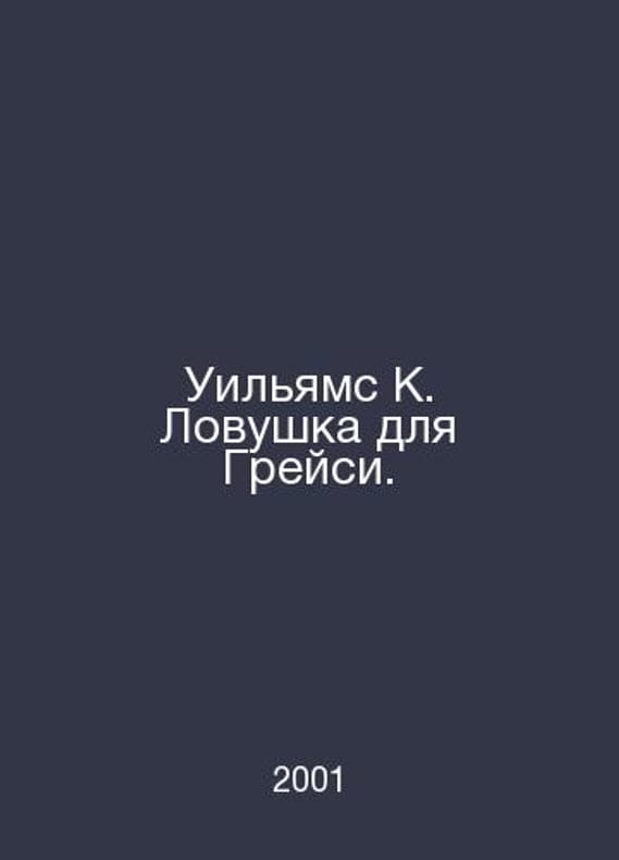 Williams K. Trap for Gracie. In Russian /Uilyams K. Lovushka dlya Greysi. M Panorama Publishing House 2001. Contact us for details or to request photos of available books. Delivery of this book could take longer than normal due to additional handling time before shipping, and no rush delivery options are available. Please let us know if you have a specific date by which you need to receive your order. SKUalbfe1b5a848fac02ab
