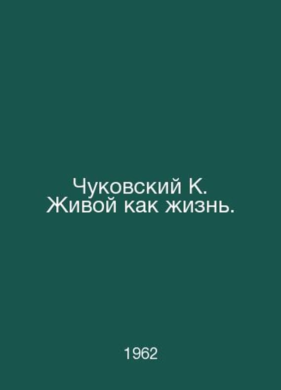 Chukovsky K. Alive as Life. In Russian /Chukovskiy K. Zhivoy kak zhizn. M Young Guard 1962.. Contact us for details or to request photos of available books. SKUalbfe893eaddd786f49.